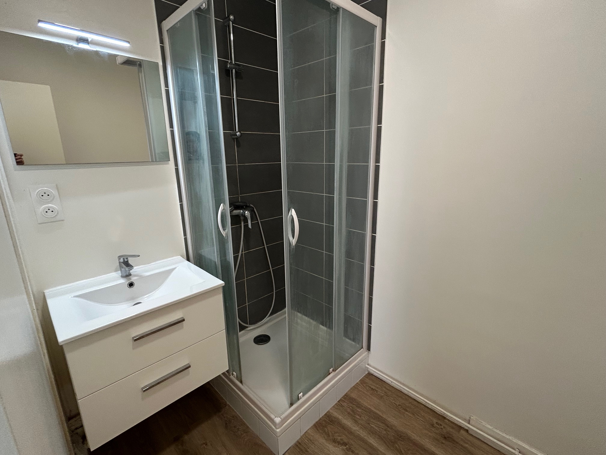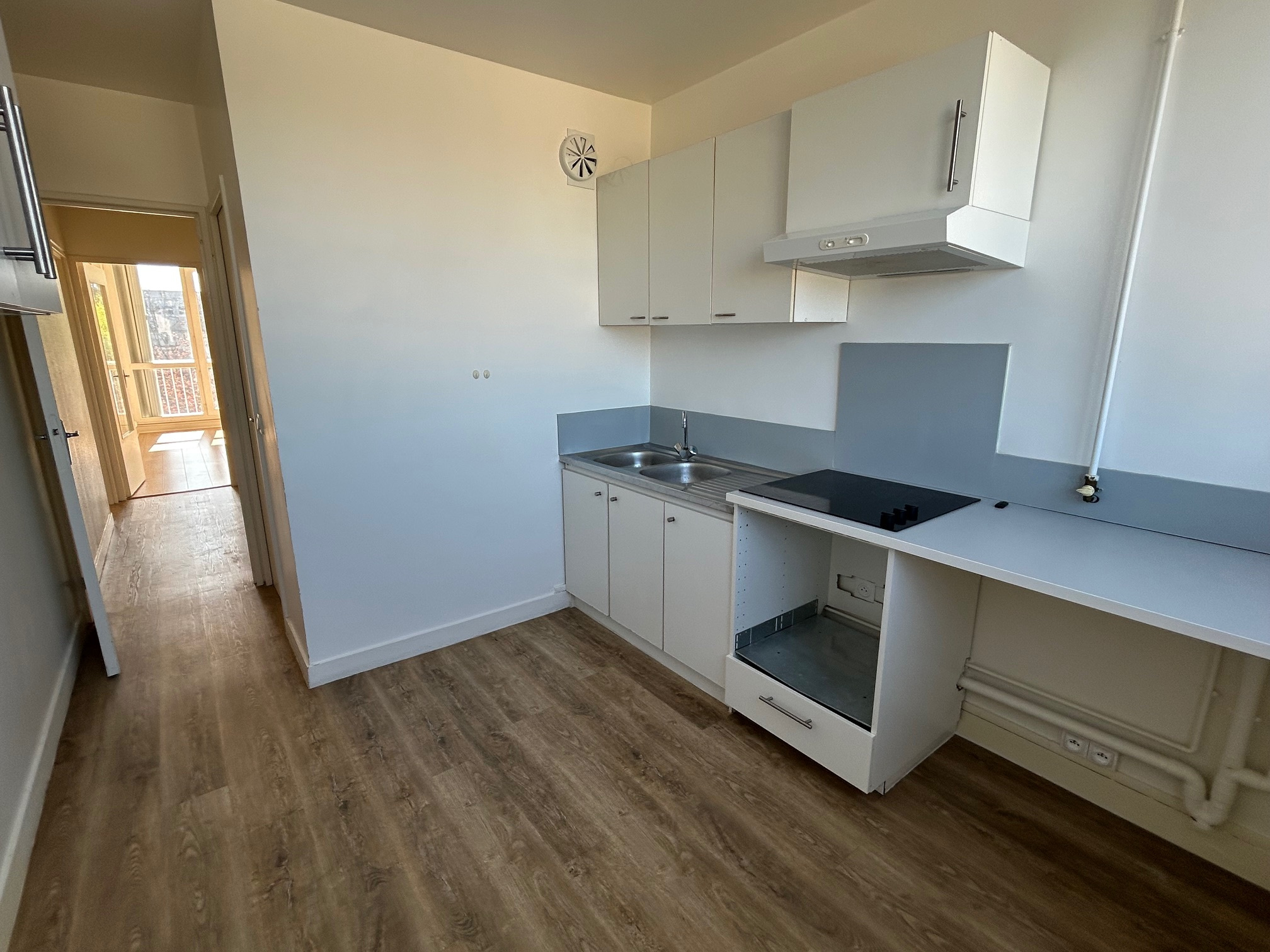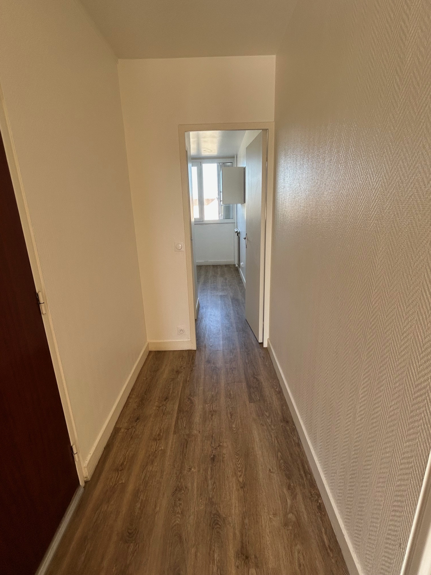 une entrée, un séjour, une chambre avec placard, un grand placard, une cuisine séparée, une salle d'eau, un wc séparé.
